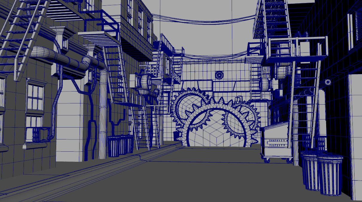 A back alley with a mysterious gate to somewhere unknown. This project originally started out as an experiment with Portal lights in Redshift, but I decided to take the idea and build a full Environment around it. Everything (except the gears) was modeled in Maya, and Textured in Substance Painter. The scene was assembled in Maya, rendered in Redshift, then composited with After Effects. This project eventually served as the base idea for my 3D film "Singularity".